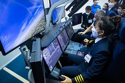 - Học viên trải nghiệm buồng lái máy bay mô phỏng